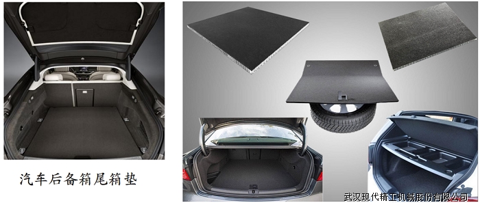1、應(yīng)用于乘用車的行李箱蓋板、行李箱隔板、行李箱地毯基板、側(cè)圍裝飾板、頂棚等內(nèi)飾部位。