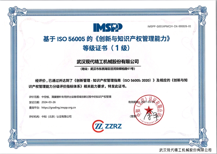 恭喜武漢現(xiàn)代精工機械股份有限公司獲得ISO56005知識產(chǎn)權貫標