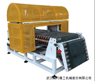 同步切割系統(tǒng):它是由同步切割機(jī)和相關(guān)控制系統(tǒng)組成,它將擠出機(jī)擠出成型的濕坯板材按照所需長度切割成一定長度的濕坯板材,切割過程中,鋸片沿板材輸送方向,以板材輸送速度同步移動,從而保證板材端面的平直。